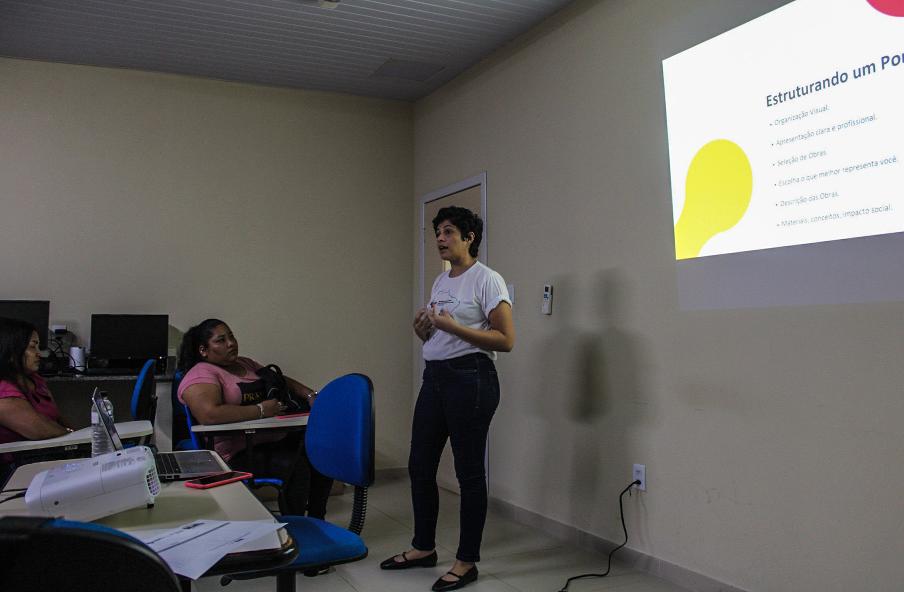 No dia 21 de outubro de 2024, foi realizada em parceria com o curso de Licenciatura em Música da Universidade Federal de Roraima, a formação intitulada “A importância do portfólio na trajetória artística”, a formadora Icléia Castro conduziu um momento formativo com os(as) acadêmicos(as), com foco na importância da construção e manutenção de um portfólio artístico. Durante sua fala, Icléia destacou que o portfólio é uma ferramenta fundamental para apresentação da trajetória, dos projetos e das habilidades técnicas e criativas de um artista. Reforçou que um portfólio bem estruturado amplia as possibilidades de inserção em editais públicos, redes de colaboração, circuitos culturais e oportunidades de formação. A palestrante também explicou que, nos processos seletivos das leis de fomento à cultura, como a Lei Paulo Gustavo e a Política Nacional Aldir Blanc (PNAB), o portfólio é frequentemente exigido para demonstrar a atuação do proponente. A exposição buscou sensibilizar os estudantes sobre a importância de documentar suas produções ao longo da formação acadêmica, organizando-as de forma coerente, atrativa e contextualizada, de modo a evidenciar o percurso artístico e profissional de cada um.