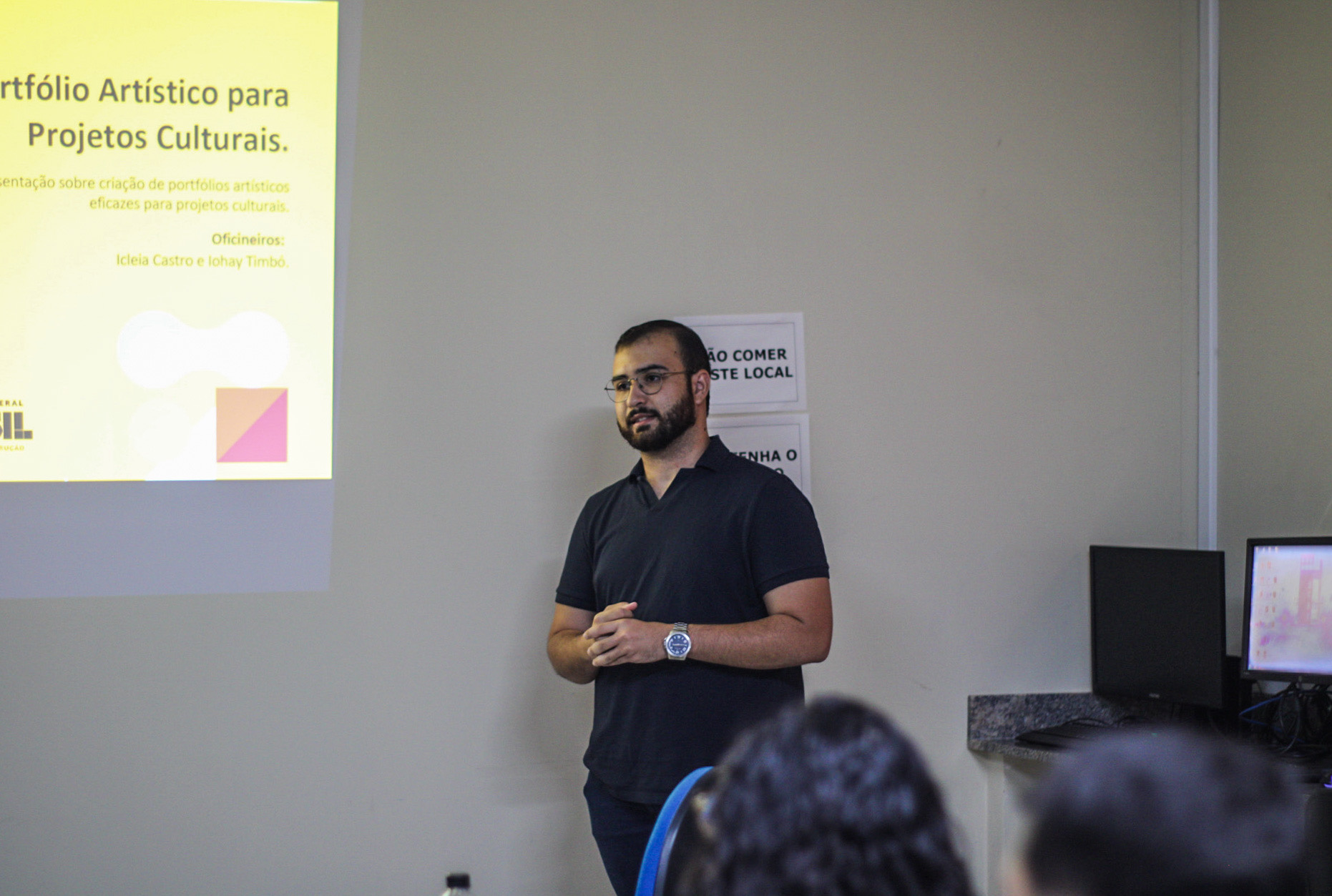 No dia 21 de outubro de 2024, após a formação intitulada “A importância do portfólio na trajetória artística”, foi realizado um momento de atendimento prático, o facilitador Iohay Timbó conduziu um momento prático voltado à construção de portfólios artísticos com os(as) acadêmicos(as) participantes. A atividade teve início com a apresentação dos principais elementos que compõem um portfólio, como a biografia artística, registros de apresentações, produções culturais anteriores, imagens, links de mídias e formas de contato. Iohay destacou que o portfólio deve refletir a identidade e a trajetória do artista, apresentando seus trabalhos de forma clara, profissional e acessível. Em seguida, o oficineiro guiou os participantes em um passo a passo prático de construção de portfólio, utilizando ferramentas digitais gratuitas. Com acompanhamento individualizado, os estudantes iniciaram a organização de seus próprios portfólios, utilizando materiais autorais trazidos previamente ou disponíveis online. Ao final da atividade, a maioria dos participantes já havia estruturado uma primeira versão de seu portfólio, apta a ser aprimorada e utilizada em processos de fomento e divulgação artística. A oficina se consolidou como um espaço de aprendizagem prática e valorização do percurso artístico dos estudantes de música da UFRR.